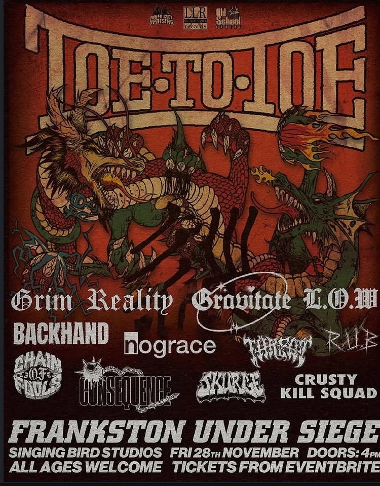 Mixed billPunkHardcoreAll AgesSkurgeFrankstonGrim Realitytoe to toegravirateL.O.W.backhandno graceR.U.BSinging Bird