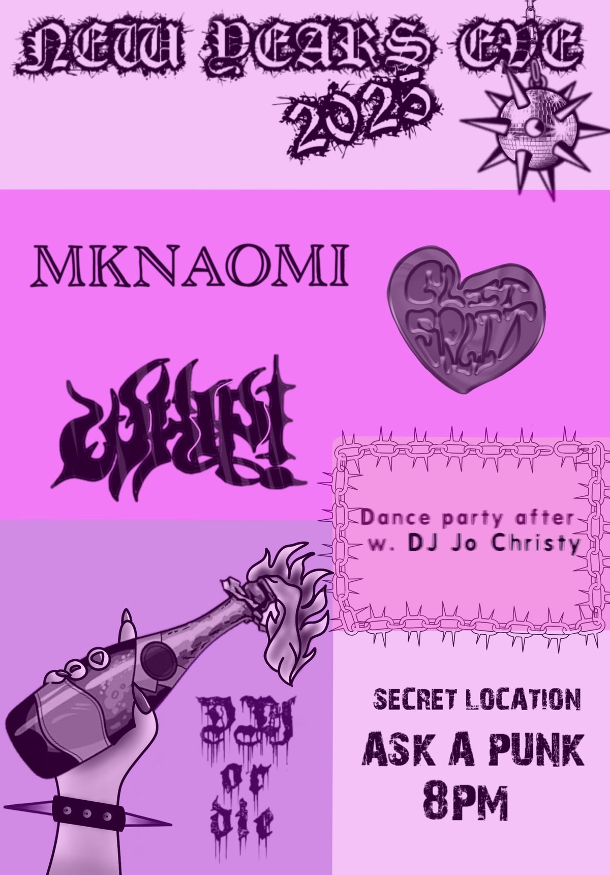 Ring in the New Year at a secret location with MKNAOMI, Clit Split, Whip and DJ Jo Christy (and possibly more).