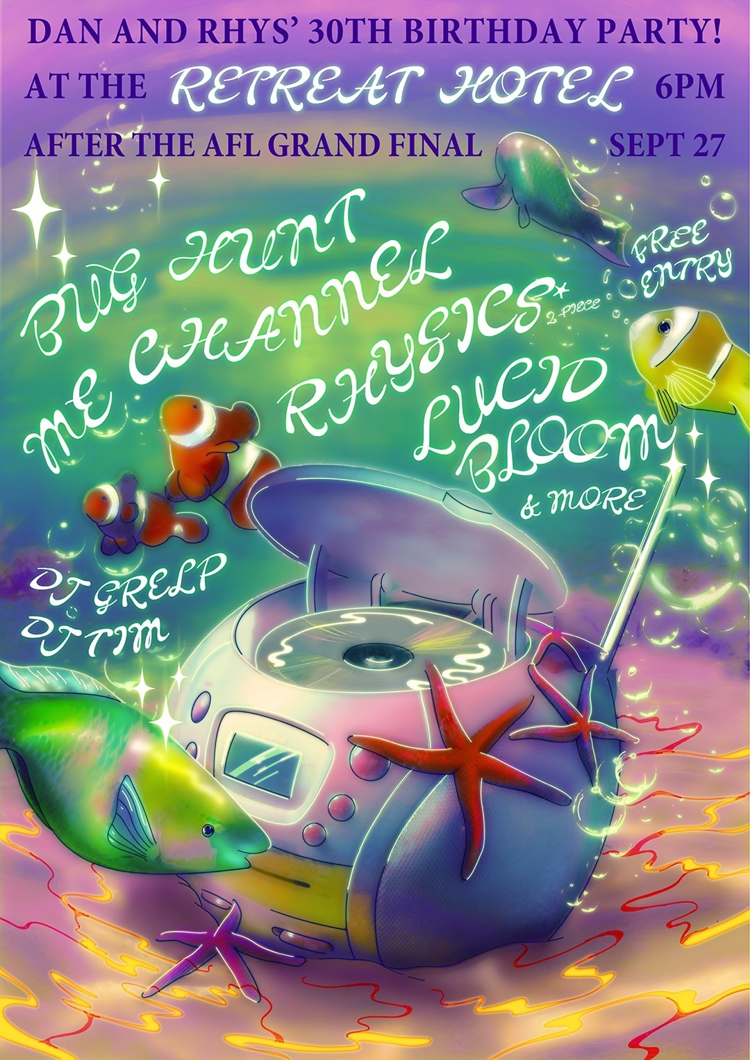 Bughunt, Rhysics, Lucid Bloom (NSW), Equestrian Fields, Me Channel & more @ The Retreat