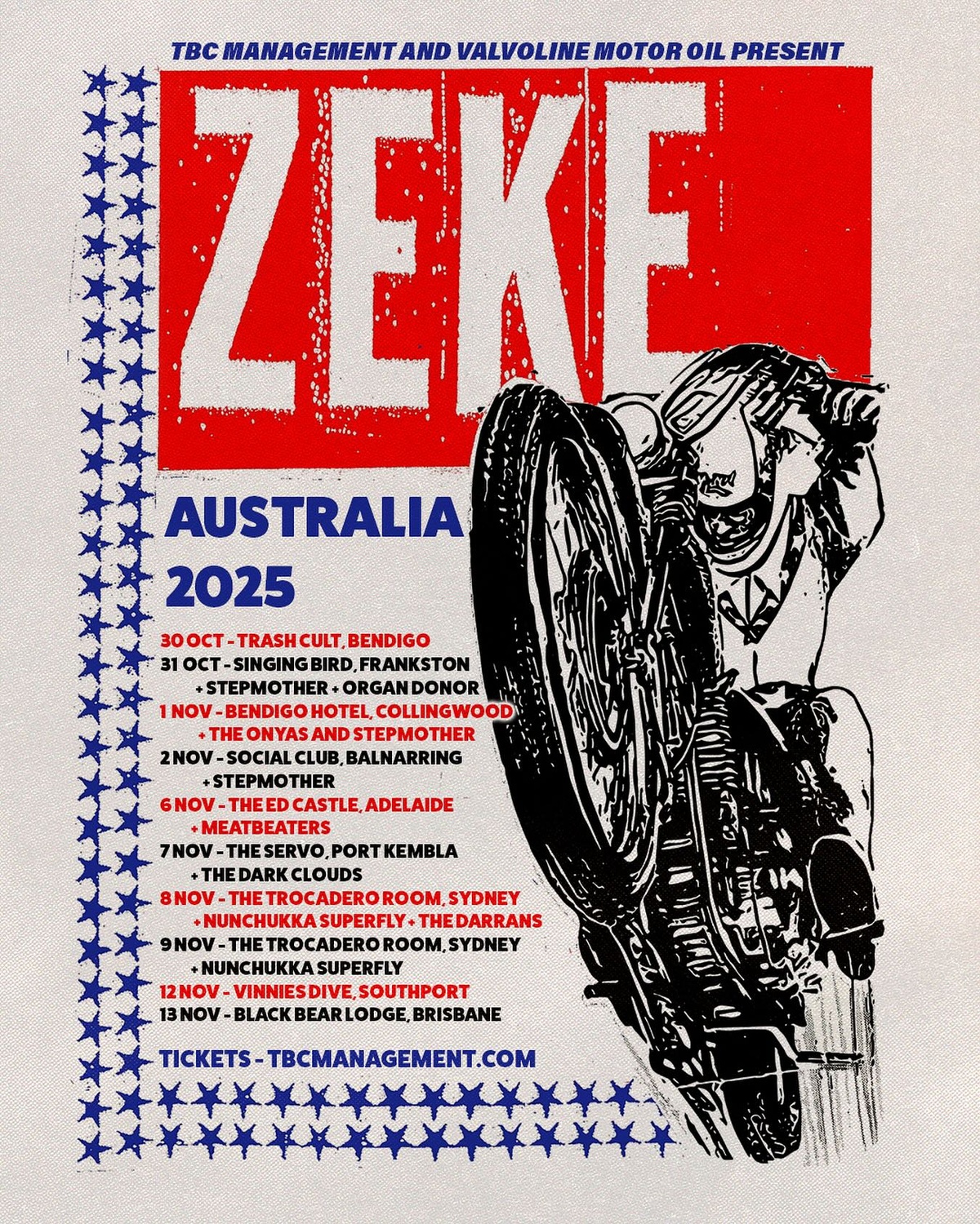They will melt your faces, they will melt your minds, they will steal your souls, catch Zeke on their upcoming Australian tour in 2025.